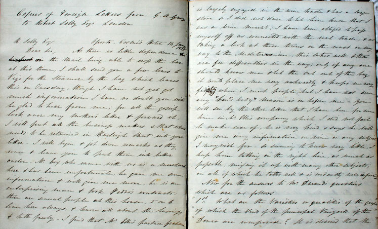 Copies of Foreign Letters from G. A. Grey to Robert Selby Esq. London.