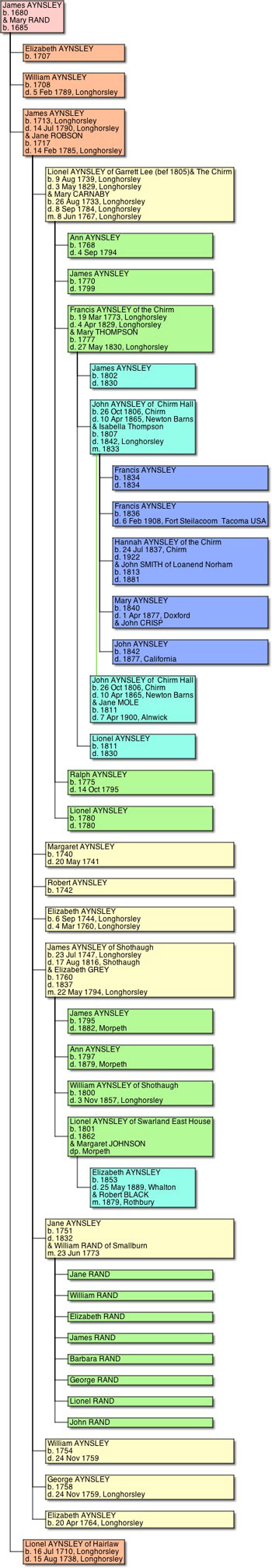The Aynsley tree is made from census records and some of the monumental inscriptions at Longhorsley.