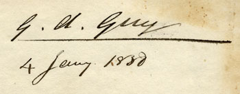 P. S. Dear Bacon – Will you get my house swept and garnished – viz. get some sort of camp for me to sleep on and some things to lay over me I have hardly seen a carpet or bed hanging since leaving Engld. and see little use for such things at least until cold weather returns – a few chairs chest of drawers etc – I can greet with Mr Cameron for a while till things go into order – I think there are no shutters to my bedroom windows, get some green things to keep the sun out, or you will have me sleeping at my desk instead of in bed – you had better eat up the jam I left if you have not done so already it will grow dry in hot weather – I never felt cold so much in England as I have done in coming from the South here, but the weather is now becoming warm again Yours afftly G.A.G.