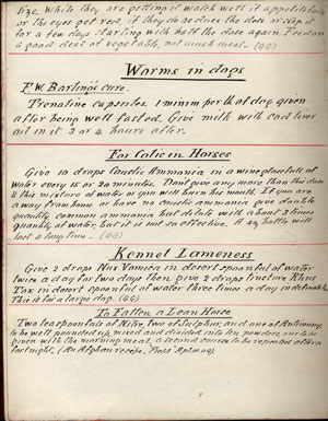 For Colic in Horses Give 10 drops Caustic Ammonia in a wine glassfull of water every 15 or 20 minutes. Don’t give any more than this dose and this mixture of water or you will burn his mouth. If you are away from home or have no caustic ammonia give double quantity common ammonia but dilute with about 3 times quantity of water, but it is not so effective. A 4 oz bottle will last a long time. (G.G.)
