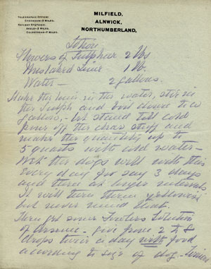 September 21st Milfield 7 A.M. Berwickshire. Drew the Flodden strip but found only an old fox. Found several cubs in the far plantation and ran one round Housdon to Reedsford and lost him. Drew Sandyhouse Dene blank. Found in Lanton Dene and ran round the face of Lanton Hill and back through the Coxon strip and Sandyhouse Dene to Lanton Dene again and lost him. No scent and windy. Rode a horse belonging to Mr. Forster. September 30th Croft 8 A.M. Drew Bamlett’s and Sewerage farms blank. Found in Blackwell Grange garden and ran up the river nearly to the Water-Works and then turned to the right over the road into some private grounds and lost him. Found again in a potatoe field near the river and ran down the river side and into the plantation behind Blackwell Grange where hounds divided and did no more good. Rode Zetilla. October 2nd Girsby 8 A.M. On the way to draw Scarhill plantation hounds broke away into Pease’s big plantation and killed a cub. Found another in Scar Hill plantation and after hunting it for about fifteen minutes it got to ground. Found and killed another in the Gill and killed another in Pease’s big plantation, making altogether 1 ½ brace. Rode Egal. October 9th Girsby. 8 A.M. Drew Hugill’s young plantation and Beverley Wood blank. Found in Allans’ and ran several times round the plantations and down to the river but eventually lost him. Drew the Gill running at right angles to Beverley Wood blank and after I left I believe they drew Staindale Gill also blank. Rode Zetilla. October 14th Oak Tree. 9. A.M. Found in Church Whin and ran to the Slag bank. Found another in the whin and ran him nearly to the railway crossing at the end of the plantation running up from Goosepool plantations. Drew Chapman plantations blank. Found on Newsham banks and ran nearly to Low Middleton where hounds crossed the river and ran by themselves through Pease’s plantations over the river at the Fish Locks and again at Neasham Hall and on into Forty Acres. Raining nearly all day. Rode Egal. October 21st Shakenhurst 10 A.M. (Ludlow) (Mr Wickstead’s place) Found in Windricks wood. The first fox came away almost at once and ran a small ring and back into the Wood. Then after hunting several foxes for some time in the wood hounds got another one away at the top and ran him by Clowe’s Top, Spillsby dingle, the Rants, Wisset’s Wood, below Shakenhurst and over the railway through Master’s rough and Barne’s Land dingles and lost him two or three fields beyond that. Drew Shakenhurst dingle blank. A nice hunting run never very fast. Rode a horse from the “Feathers.” October 27th Neasham. 11 A.M. Found at Sockburn and ran over the river to Girsby Scar and then down nearly to the Fish Locks where hounds recrossed the river and ran through Bolton Park to the back of Neasham Hall and lost him. Drew Bolton Park and the Surtees big Wood blank. Found several cubs in T. Wilkinson’s covert and after bustling them about for an hour ran one to ground and killed him. Rode Zetilla. November 5th Wark. 10.45 A.M. Berwickshire. Found in the strip on the left hand side of the road between Wark and Carham and ran to within two fields of Wark Common Covert, past Nottylees, over the railway at Carham crossing and back past Carham to where we found him and round again almost over the same ground and killed him in the strip where we found. Drew Wark Common whin blank. Found in a turnip field on Howlam and ran around Nottylees and back into the whin where he got to ground. A terrier was put in and bolted a fresh fox which ran around by Howburn and on to Sunnylaws where hounds were stopped. Rode Zetilla. November 12th Cornhill. 10.45 A.M. Drew the Bathing Well and the plantation near the Railway blank. Found in a turnip field on Learmouth and ran to the Branxton road, then turned sharp back past Crookham West Field and over the road into the strip, then back over the road and on to Branxton and back again to Pallinsburn where they killed him after running several times round the plantations surrounding the house. A bad twisting run. Time about 66 minutes. Drew Branxton whin, Moneylaws whin and Butterston whin blank. Rode Zetilla. November 26th Paston. 10.45 A.M. Found at Bowmont Hill and ran a ring round the covert and lost him. Found again in a turnip field between the oustead and the covert and ran past the oustead over Bowmont, through the Lake plantation and onto the hill at the back then turning to the left ran past the plantation above Paston through the Lake plantation again and down to Mindrum Mill where he got in. Rode Zetilla and cut her knee on a stone wall so came home before hounds ran through the Lake plantation the second time. December 3rd Etal manor. 10.45. A.M. Drew all the Etal, Stainsfield and Berryhill plantations and Wood End, Woodside, Duddo and Berrington Dene blank. Blank day. Rode George Black’s horse. December 28th Oak Tree 11 A.M. Drew Church Whin, Chapman’s Plantations and Newsham Banks blank. Found in Harrison’s Gill and ran down Newsham Banks nearly to Low Middleton and back through Harrison’s and last him near Chapman’s. Rode Egal.