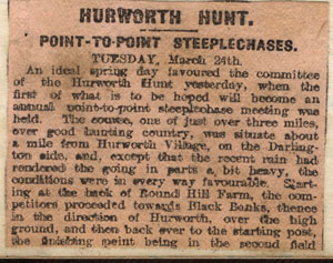 March 25th Neasham 12 o’clock Drew down the river from Neasham Hall round by Sockburn to Bolton Park blank. Found a fox in Surtee’s plantation which was evidently a vixen as it would not go away. Drew Wilkinson’s blank. Found in Birch Car and ran round by Maidendale whin and back again through Birch Car and round again by Maidendale and back through Wilkinsons and on to Surtee’s plantation. Rode “Zetilla.”