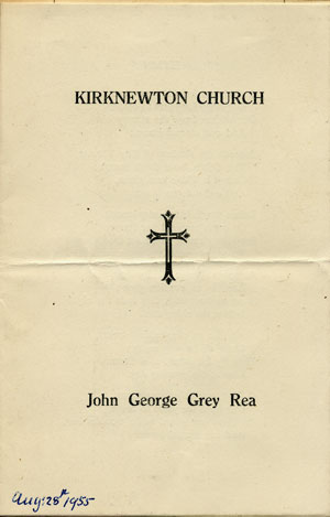 John George Grey Rea served in WW1 as a Captain, then Major in the Northumberland Hussars. He married Lavina Lambert in 1919. In 1947 he was High Sheriff for Northumberland. He was awarded the CBE in 1953. John George was called "Jack" by the descendants of the Tweddell family and "Kit" by the Milfield Greys. He died at Berrington House on 25 August 1955. Lavina died on 30 July 1957. They are both buried at Kirknewton.