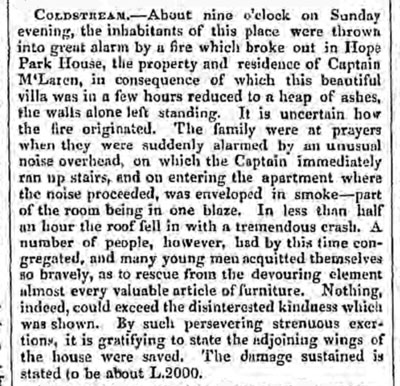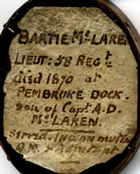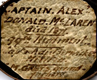 Records for the Berwickshire Militia show that Alexander Donald McLaren was Adjutant in 1816 and John Bartie was Quarter Master in 1818 and Robert Cunningham was paymaster in 1814. (Left)