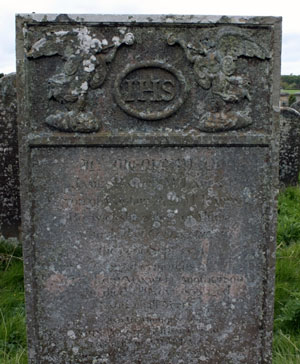 ‘IHS’ – In memory of JAMES BARTIE McLAREN son of Captain A.D. McLAREN Berwickshire Regiment of Militia who died at Coldstream on the 12th September 1824 aged 13 months. Also of ROBERT MAXWELL another son who died 4 November 1833 aged 2 ½ years. Also in memory of JOHN WRIGHT father in law to Captain A.D. McLAREN who died at Coldstream 18 May 1824 aged 65 years.