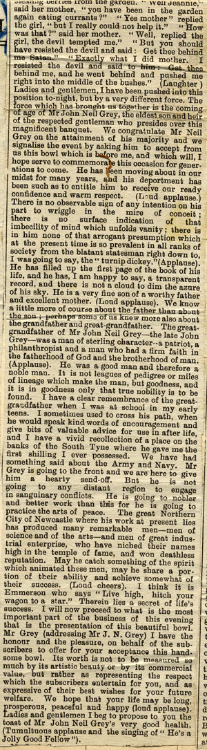 He came of age in 1900. The Alnwick Guardian reported the party: