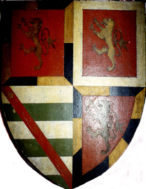 Jock was interested in history, genealogy and heraldry. Left: one of his drawings. Below: a wooden shield that he made after his brother Ivar married Kathleen Blake. In September 1915, when his father died, he was living at Williamgill House, Brampton Junction, Cumberland.