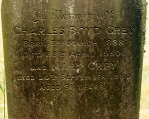 Charles Boyd Grey born at Milfield on Saturday 3 March 1888 christened at Kirknewton by the Rev. M. Piddock