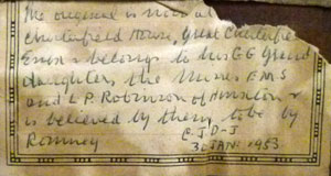 Portrait of Richard Hetherington Esq now in the Lancashire Museum. It has 3 labels on the back. "Richard Hetherington Esq. President of The Virgin Islands and of The Hill, Burton in Lonsdale, Yorkshire. Born 1740 died 1821". "The original of the picture is in the possession of his grandson Charles Richard Robinson Esq. J.P of Brettonby Manor, Yorkshire". This is initialled 'FDJ 6 March 1883' - ie Francis Dixon Johnson, grandson of Richard Hetherington. 2 Captain Dixon Johnson no ? 4/5 "The original is now at Great Chesterfield House, Great Chesterfield, Essex and belongs to Mrs G. G. grand-daughters the Misses E.M.S. and L.P. Robinson of Hinxton and is believed by them to be by Romney 30th January 1953". This is initialled 'C. J. D-J' and matches the initials reproduced on this page. The portrait is inscribed "A copy by C. Burlison 1872 from a portrait by Parkinson 1761."