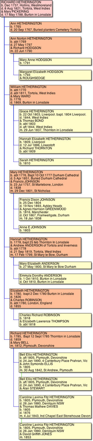 Above: Part of a slightly modified family tree from ancestry. co.uk submitted by Steven Stewart Gibson who lives in Melbourne, Victoria. It has few sources and has not been verified but shows how Francis Dixon-Johnson and Charles Richard Robinson are the grandsons of Richard Hetherington.