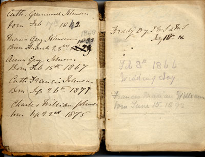 Inside front cover: Cuth. Greenwood Johnson Born Feb 17th 1832 ( corrected to 42)