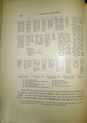 ... Respecting the uncertainty you feel whether John Grey was actually the son of John Grey and Francis Watson: - (i.e. was John ii son of John i in my table) I verified by reference to Longhorsley Register that on 28th May 1696 John Grey & Frances Watson were married 3 April 1697 John son of John Grey of Lincolnfield was baptised...... You have pointed out that Grey's eldest daughter was called Elizabeth (not Frances) which was probably after his mother, as the second daughter was called Ann after his wife's mother and the wife of Edward Grey of Burgham. I was not quite sure which of the John Greys you intended but the allusion to his wife's mother shows that do you mean John ii. Though Ann is named in your “Extracts” as buried in 1760., there is no date of birth given. I had not myself researched further ? ….than 1754; and have inserted only Elizabeth and Margaret in the pedigree as sisters of John iii, daughters of John ii. I am so far unable to judge the probability, one way or the other as between the parentages of the two John Greys, one the husband of Margaret, the other of Elizabeth Aynsley... Yours of 4th Decr. Yes, it is a blunder to put Heton into Norham- it should be, Cornhill. For this the Vol XI pedigree must share blame ?with me. Yours sincerely George Grey Butler