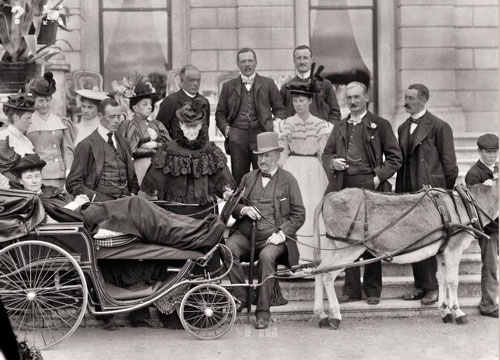 The National Library of Ireland which is labelled "Lady Waterford in carriage, Duke and Duchess of Waterford and other guests, Curraghmore House, Portlaw, Co. Waterford" and dated between 1900-1910.