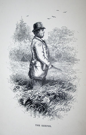 Left: Illustration from "The Game Keeper at Home", Above: the front cover, written on frontispiece "George Grey June 29th 1880. C.M.G"