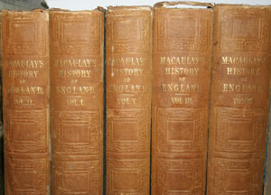 Far left : Otter's mask. Right: Five volumes of Macaulay's History of England, sold by Brands in Wooler.